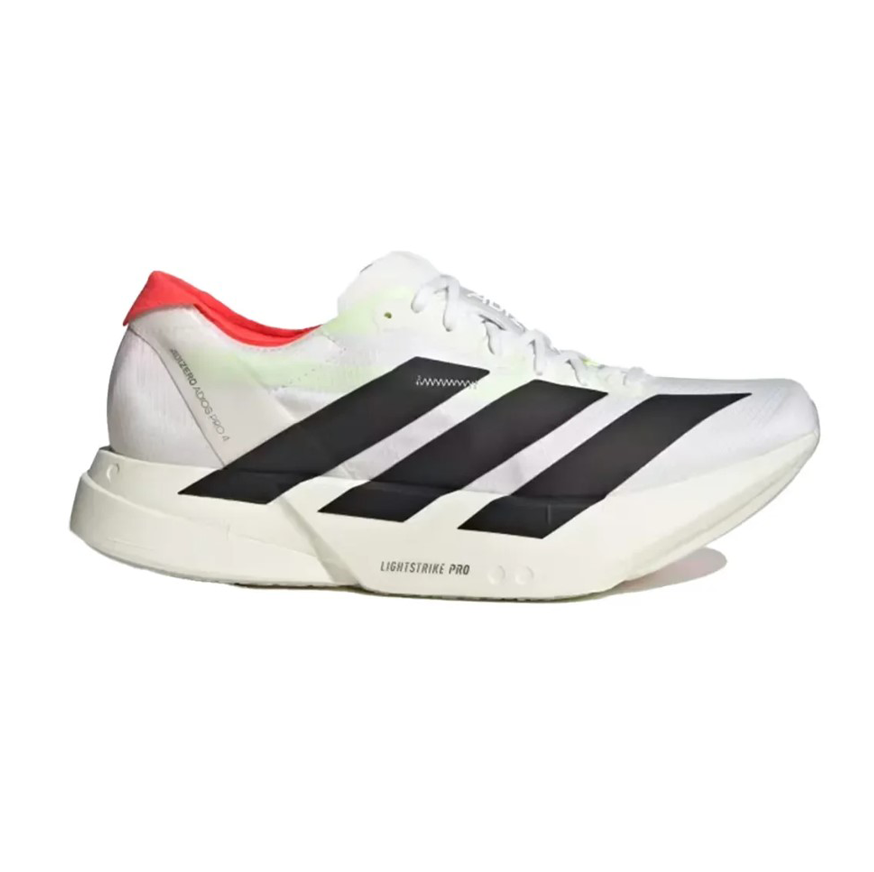 Prouvée comme étant la chaussure la plus performante au monde, la gamme Adizero Adios Pro est l'apogée des chaussures de course Adizero. L'Adios Pro 4 est conçue pour les runners rapides qui veulent expérimenter la vitesse, avec des fonctionnalités améliorées conçues pour optimiser l'efficacité de la course. Nos tiges en carbone ENERGYRODS 2.0 assurent une transition fluide du talon à l'avant-pied pour une foulée dynamique et efficace. Dans la semelle intermédiaire, un nouveau point d'ancrage améliore l'économie en course. Une double couche de notre mousse ultra-légère, LIGHTSTRIKE PRO, t'offre un maximum d'amorti et de dynamisme à chaque foulée, pour maintenir ton niveau d’énergie sur la durée. La chaussure est équipée d'une semelle extérieure en caoutchouc Continental™ pour une transition optimale et d'une technologie LIGHTTRAXION pour plus de légèreté sans sacrifier l'adhérence.