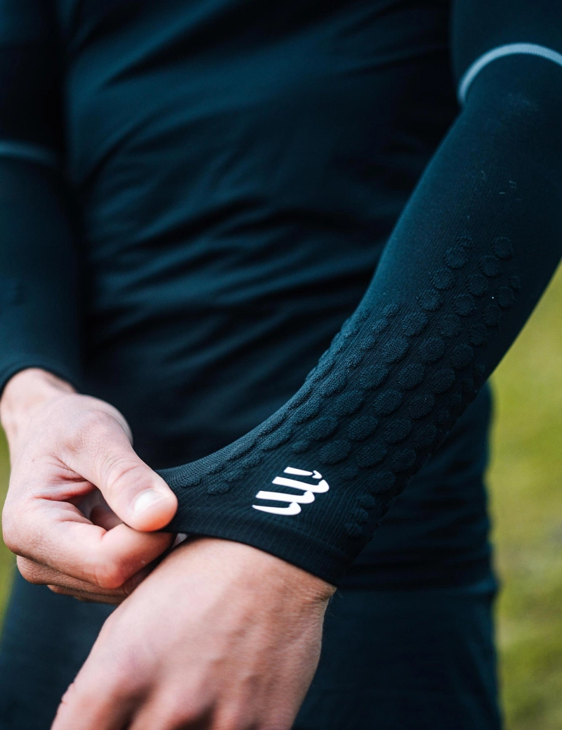 Parfois le temps est tellement compté que s'arrêter pour retirer des couches n'est pas une option; disposer d'une solution flexible et efficace est primordiale. Conçues avec la même matière que nos chaussettes haute performance, les manchettes Armforce Ultralight sont extrêmement légères et confortables. La thermorégulation est l'atout numéro un ; une propriété primordiale lorsque les températures baissent. Une légère compression soutien les muscles des biceps et des avant-bras et stimule la circulation sanguine pour une fraîcheur avant, pendant et après le sport. Une attention particulière a été portée au pli du coude, où un tissage plus léger garantit à la fois une ventilation efficace et une liberté de mouvement exceptionnelle. Enfin, nos 3D.Dots sont placés sur les avant-bras pour améliorer le flux sanguin, mais font également de très bons bandeaux pour essuyer la sueur du front lorsque l’intensité augmente. Portez ces manchettes noires à vélo, en trail ou pour toute autre activité sportive! Rapides à enfiler et à retirer, elles sont une solution passe-partout, pratique et efficace, avec en prime l'avantage d'une légère compression.