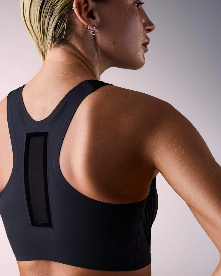 — Encapsule la poitrine sans comprimer grâce à une structure moulée, soudée et imprimée 3D sans couture.