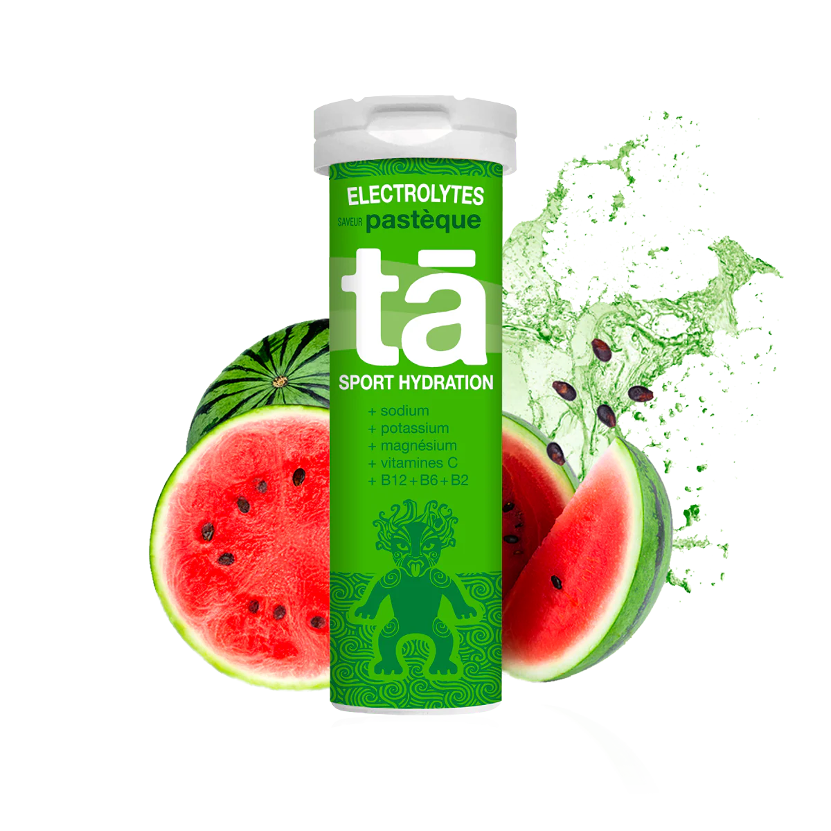 Fabriquées en France, nos pastilles d'hydratation Tā sont disponibles en 8 saveurs. Elles vous apporteront les minéraux essentiels (sodium, potassium, magnésium, calcium) pour compenser les pertes causées par la sudation, des vitamines B2, B6, B12 qui participent à la production énergétique et de la vitamine C qui a un rôle d'antioxydant et aide à lutter contre la fatigue.