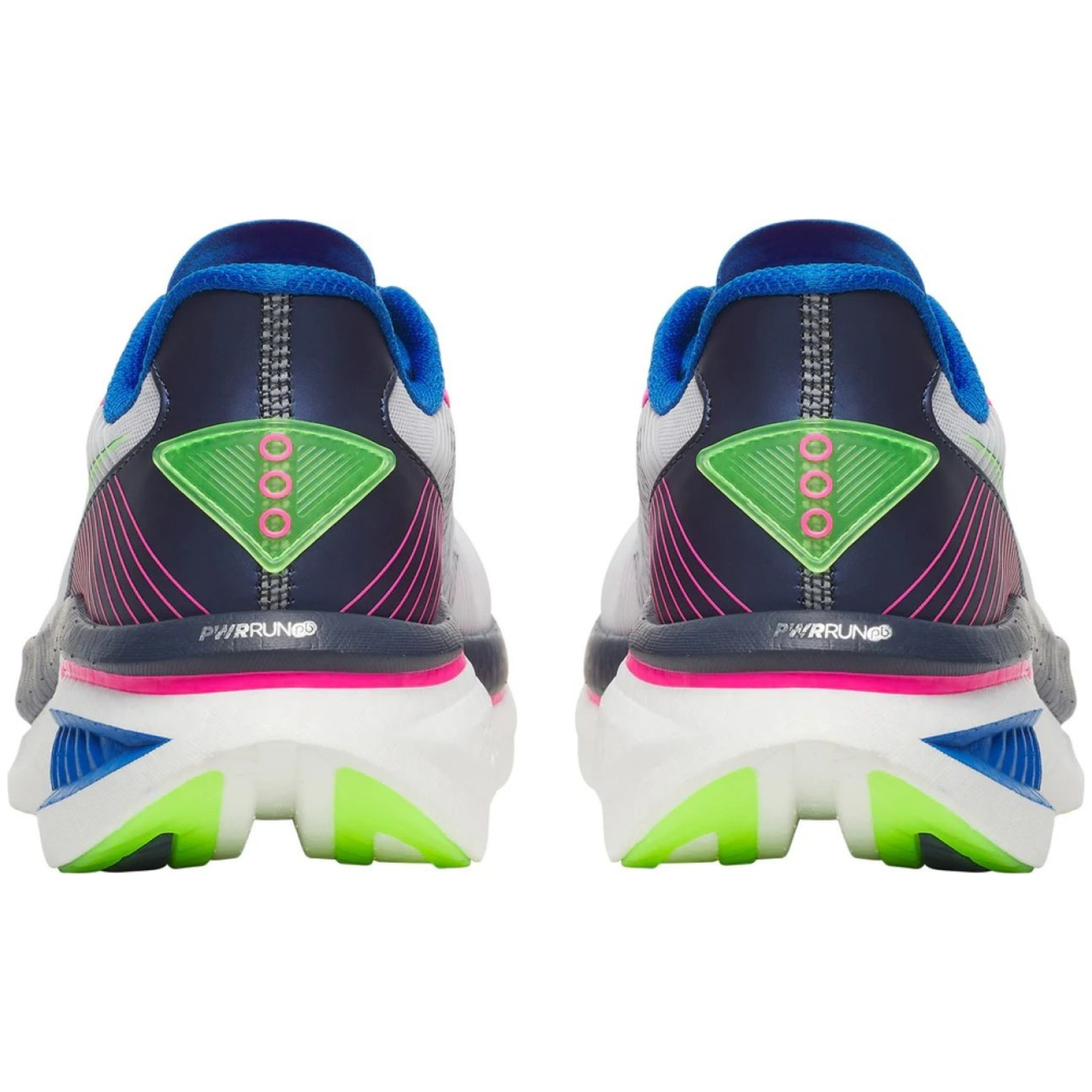 Sa semelle intermédiaire en mousse PWRRUN PB, un mélange innovant de mousse perlée et de Pebax®, apporte un amorti réactif avec un retour d'énergie exceptionnel de 88 %, tout en garantissant légèreté et durabilité. La semelle extérieure en caoutchouc XT-900 assure une excellente résistance à l'usure et une bonne adhérence sur diverses surfaces.