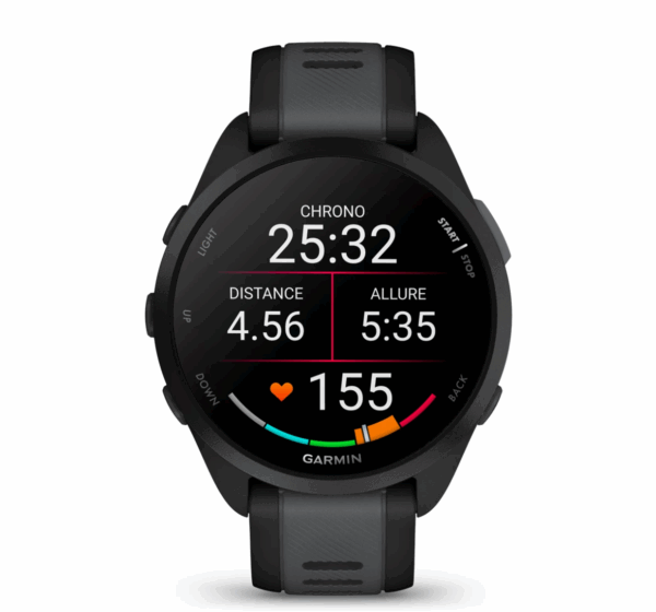 Vous courez, mais vous avez dépassé le stade du simple coureur. C'est pourquoi vous avez besoin de la Forerunner® 165, la montre connectée GPS de course spécialement conçue pour vous aider à atteindre vos objectifs grâce à des programmes d'entraînement adaptatifs et un écran lumineux pour éclairer votre progression.