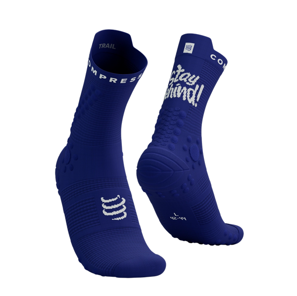 Le trail ou la course nature n`est pas une course sur route. Les pieds doivent constamment fléchir et s`adapter à un terrain en constante évolution, et les chaussures doivent suivre le rythme. Conçues dans un souci d`absorption des chocs et de protection, les chaussettes Pro Racing Socks Trail de 4ème génération font monter d`un cran les technologies Compressport pour vous accompagner dans toutes vos aventures route. Un tissage spécifique autour de l`avant-pied et de la jambe inférieure est robuste mais ventilé, évacuant rapidement l`humidité pour prévenir l`irritation. Le tissu plus épais du cou-de-pied remonte plus haut que celui de nos modèles de course pour une protection accrue, et une maille spécifique autour de la cheville offre une stabilité rassurante sur les terrains rocheux. Une toute nouvelle zone des orteils "renfort de pointe" plus large offre un ajustement plus ergonomique et une meilleure proprioception, permettant aux orteils de s`accrocher et de s`équilibrer intuitivement sur un sol irrégulier. Un rembourrage en tissu éponge résistant recouvre tous les orteils pour amortir les impacts lors des descentes rapides et brutales. Un soutien amélioré de la voûte plantaire à 360° stimule la circulation sanguine et empêche le tissu de se tordre et de se plier, évitant ainsi les ampoules et les irritations au fil des kilomètres.Les technologies Signature dot offrent une protection stratégique contre les éléments extérieurs dans les zones connues pour être problématiques pour les coureurs de trail. Les deux malléoles sont recouvertes de gros points en forme de soleil pour éviter pour prévenir les ecchymoses au bas du pied. Deux rangées latérales de 3D.Dots recouvrent les muscles fibulaires, stimulant les récepteurs sensoriels pour améliorer la proprioception et la stabilité de la cheville. Un large motif de 3D.Dots remonte le long du tendon d`Achille pour plus de rembourrage et de soutien, entourant une ligne de Flat.dots pour la ventilation. Un tissage plus dense sous le pied réduit davantage les vibrations, les 3D.Dots amortissant l`impact et donnant au pied une adhérence solide dans la chaussure. Ces points contribuent également à augmenter le retour veineux et à retarder la fatigue pour que vous vous sentiez frais plus longtemps. Plus haute que la chaussette Run Sock, la version trail offre une protection accrue du bas de la jambe et des chevilles, avec des tissus plus durables pour résister aux épreuves de la nature. Une languette ergonomique à l`arrière ajoute une touche de confort et, pour vous assurer de ne pas vous tromper de chaussette, la discipline est discrètement brodée à l`intérieur. Il n`y a pas deux chemins à suivre : il s`agit d`une chaussette de trail running haute performance, aussi résistante et durable que vous.