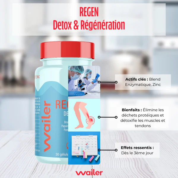 Elimine les déchets protéiques et détoxifie les muscles et tendons Actifs clés : Enzymatique, Rutine et Zinc Bienfaits : Régénère l'organisme pour pouvoir recommencer un effort sur une base saine Effets ressentis : dès le 3ème jour.