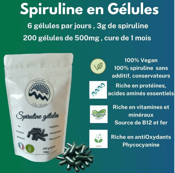 Contrairement à la spiruline en poudre ou en comprimés, elle subit un séchage doux à basse température, permettant de conserver toutes ses vitamines, minéraux et antioxydants intacts.