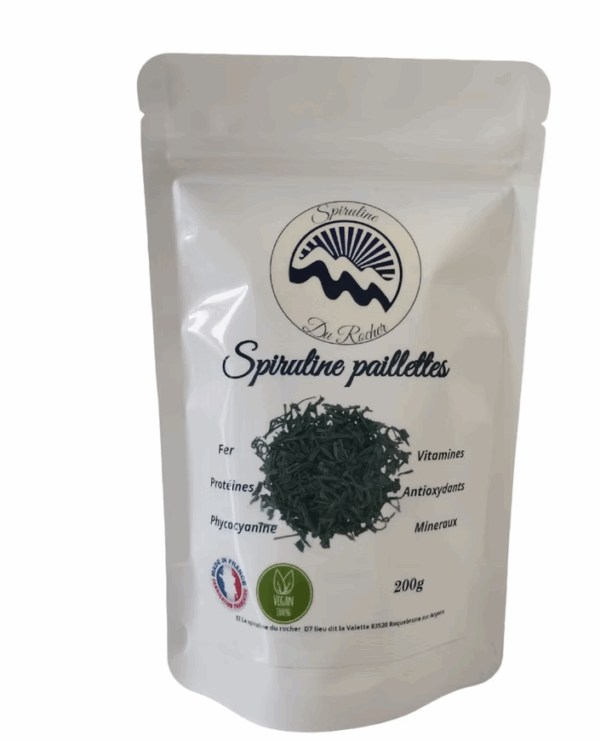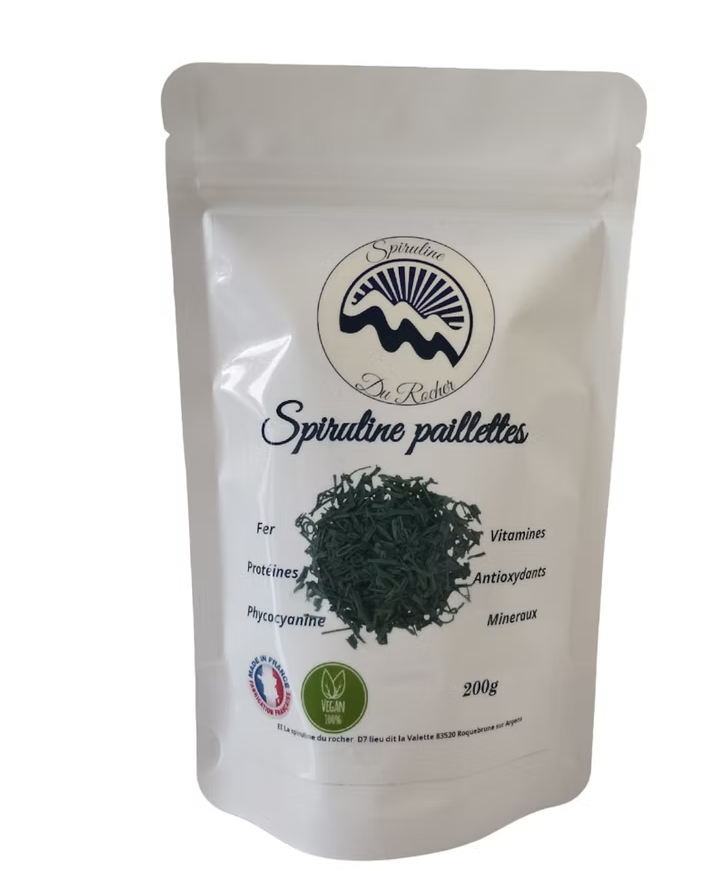 La spiruline en paillettes est la forme la plus pure et naturelle de ce superaliment.