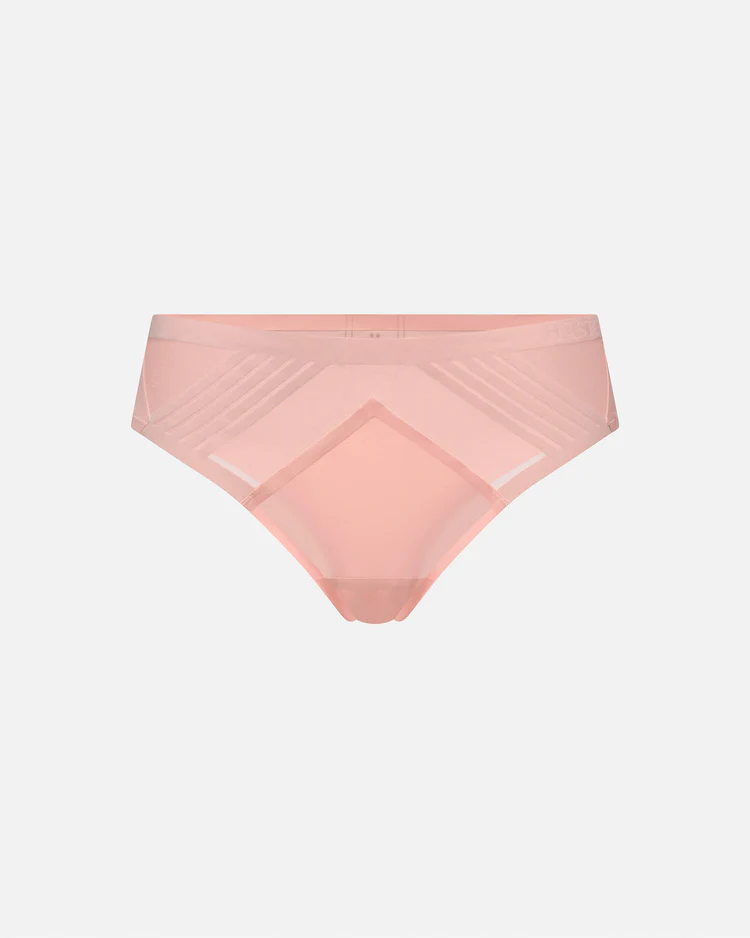 ∙Un Tanga technique de sport qui n'oublie pas d'être élégant avec ses jeux de transparence en tulle stretch et ses finitions velvet touch.