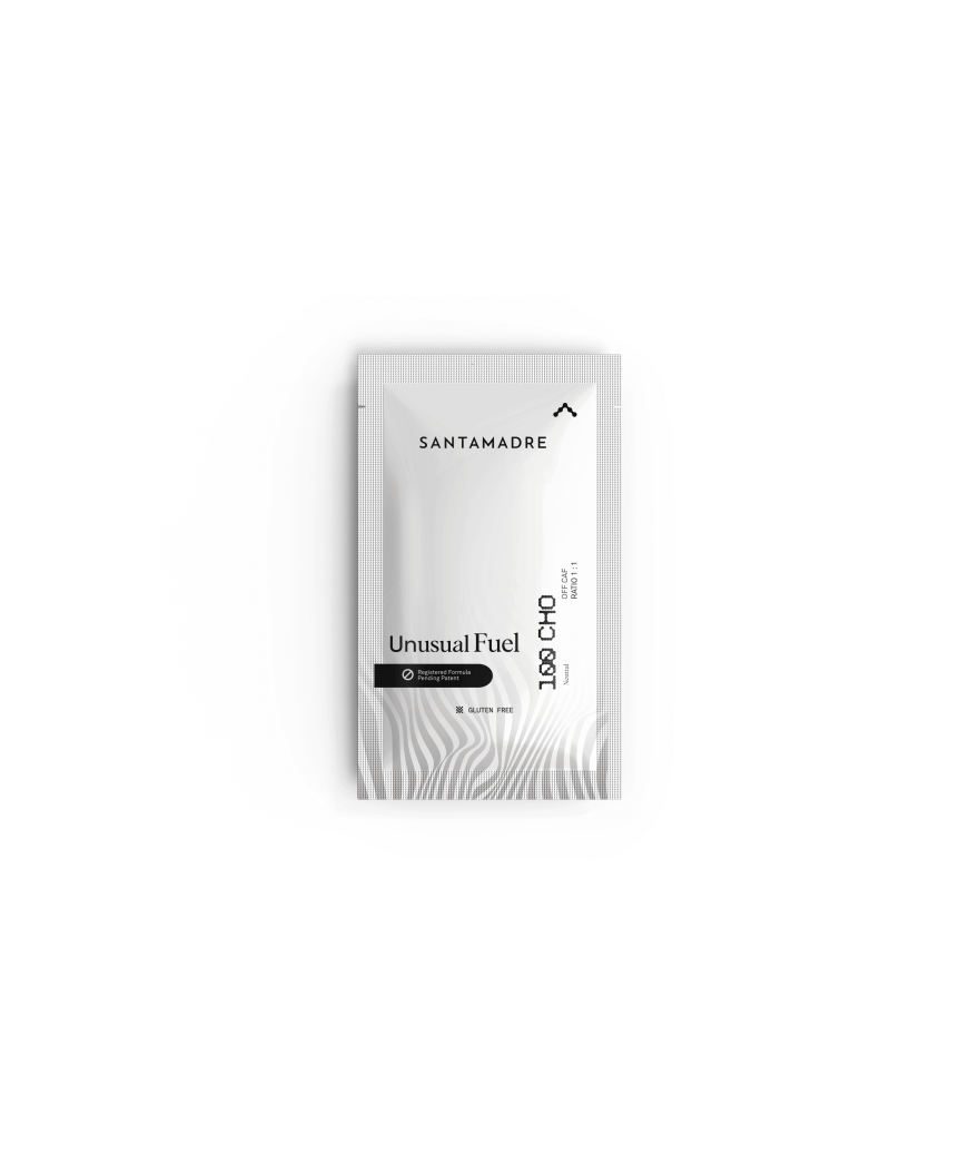 SANTA MADRE UNUSUAL FUEL est la seule boisson sur le marché avec 100g de glucides par portion et avec un ratio de 1:1, pouvant transporter des stratégies nutritionnelles de plus de 100g de glucides par heure.