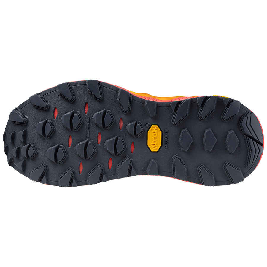 Cette chaussure de soutien est parfaite pour les coureurs qui aiment relever des défis. Vous pouvez vous attaquer aux courses de longue distance et aux sentiers techniques en toute confiance grâce à la semelle Vibram Megagrip qui améliore considérablement l'adhérence, même sur les terrains humides et irréguliers. Les pans de soutien du milieu du pied jusqu'aux côtés du talon vous permettront de naviguer sur les sentiers les plus difficiles. Les technologies MIZUNO ENERZY et MIZUNO WAVE augmentent l'amorti et le retour d'énergie pour une foulée souple. 1) MOUSSE MIZUNO ENERZY La technologie MIZUNO ENERZY, qui offre un amorti et un retour d'énergie exceptionnels, est insérée dans la semelle intermédiaire supérieure. 2) MOUSSE MIZUNO WAVE La technologie MIZUNO WAVE, avec sa structure ondulée en EVA offrant deux niveaux de rigidité, améliore la stabilité sans faire de compromis sur l'amorti. Présente sur toute la longueur de la chaussure, elle permet de franchir les montagnes en douceur. 3) Pans de soutien Les pans de soutien du milieu du pied jusqu'au talon maintiennent le pied en place, même dans les conditions les plus difficiles. 4) Vibram Megagrip Le meilleur composé haute performance de Vibram. Il offre une adhérence exceptionnelle, en particulier sur les terrains humides et irréguliers. (30 % d'adhérence verticale et 20 % d'adhérence latérale en plus par rapport aux semelles Vibram conventionnelles)